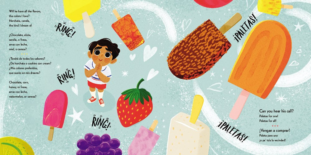 Can you hear his call? Paletas for one! Paletas for all! / ¡Vengan a comprar! Paleta para uno ¡o pa’ to’a la vecindad!